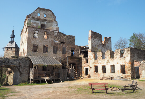 Zámek je zcela zdevastován, je nutná celková obnova.