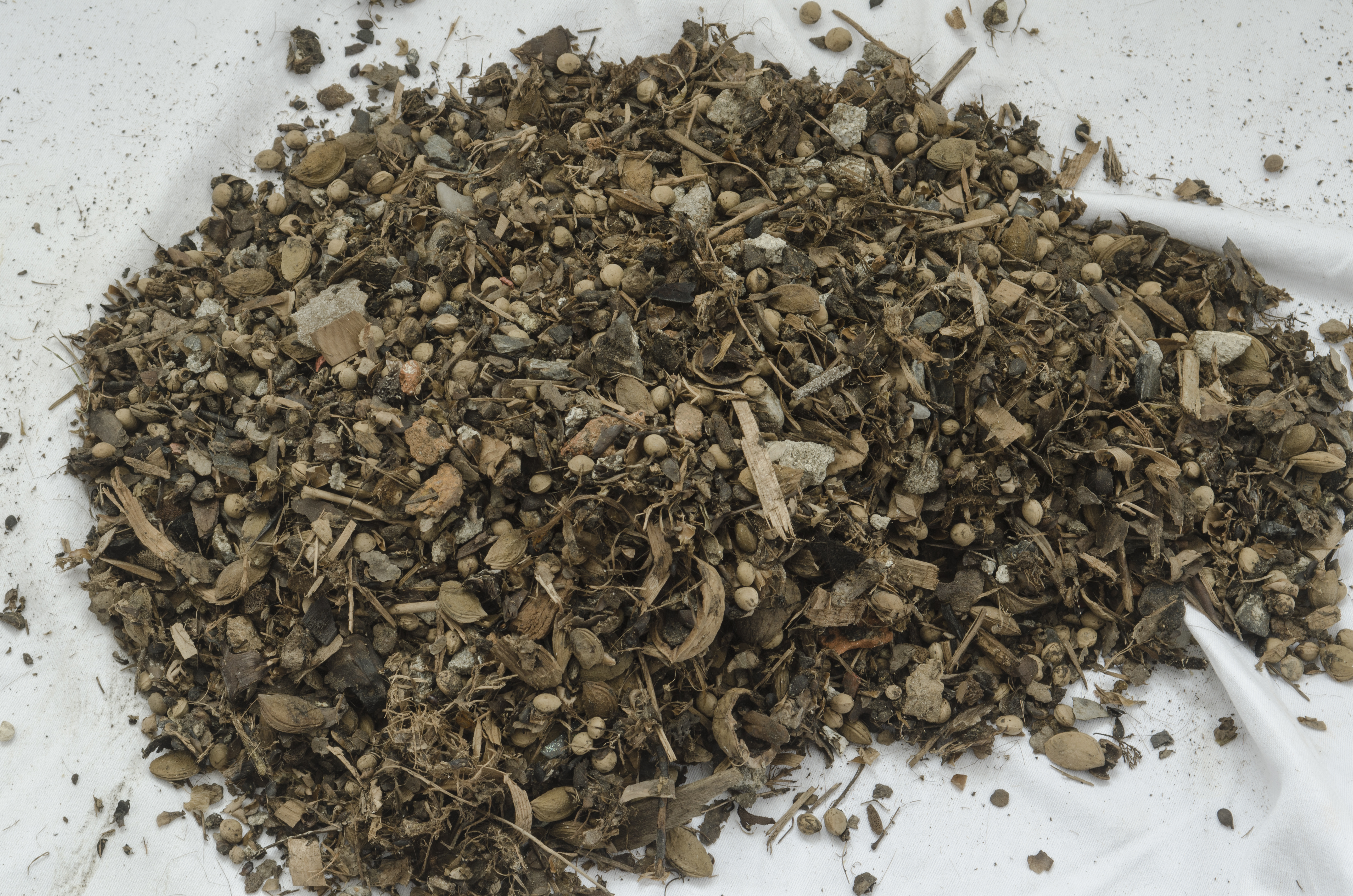 Usušená frakce s rostlinnými makrozbytky a drobnými artefakty.