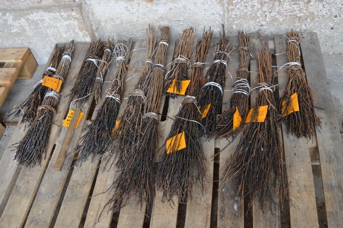 Ukázka dřevěných artefaktů – metly z březových větví.