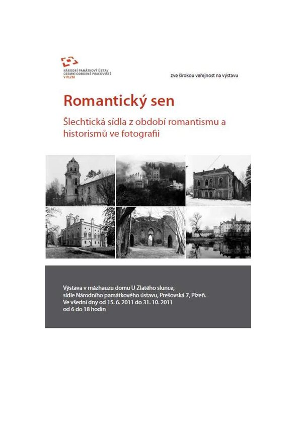 Inspiračními zdroji pro tyto stavby byla jak západoevropská středověká architektura, tak později italská renesance a domácí stavební tradice. Na výstavě se objevily snímky zachycující jednu z nejstarších romanticky upravených staveb v českých zemích (zřícenina hradu Březina na Rokycansku) až po eklektickou architekturu konce 19. století (zámek Žinkovy na jižním Plzeňsku).