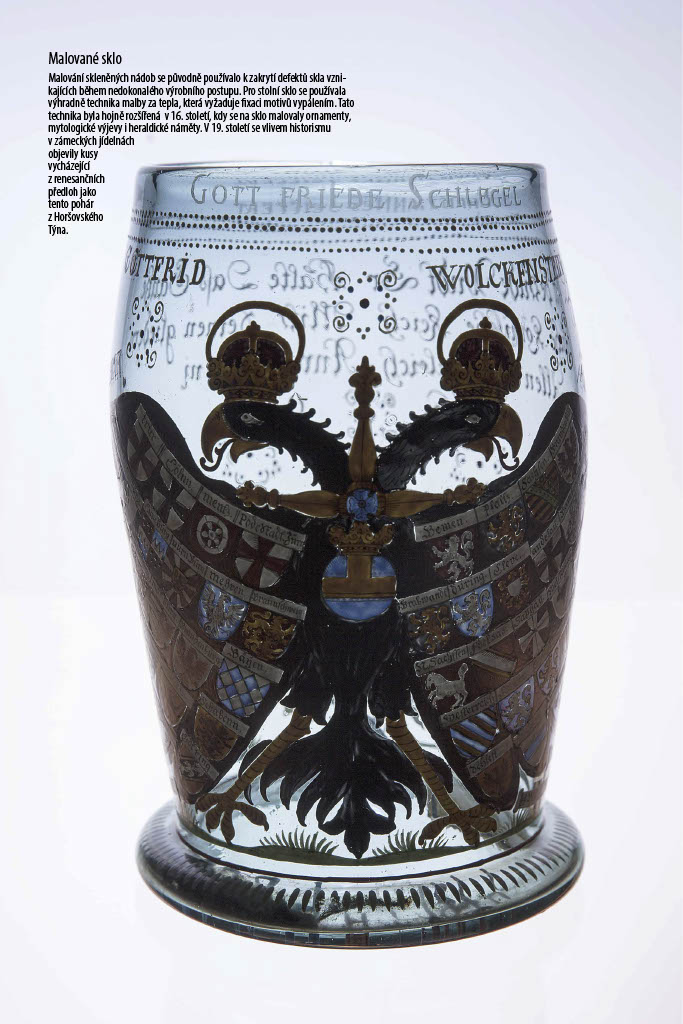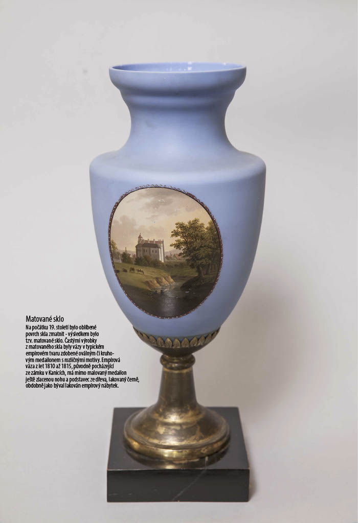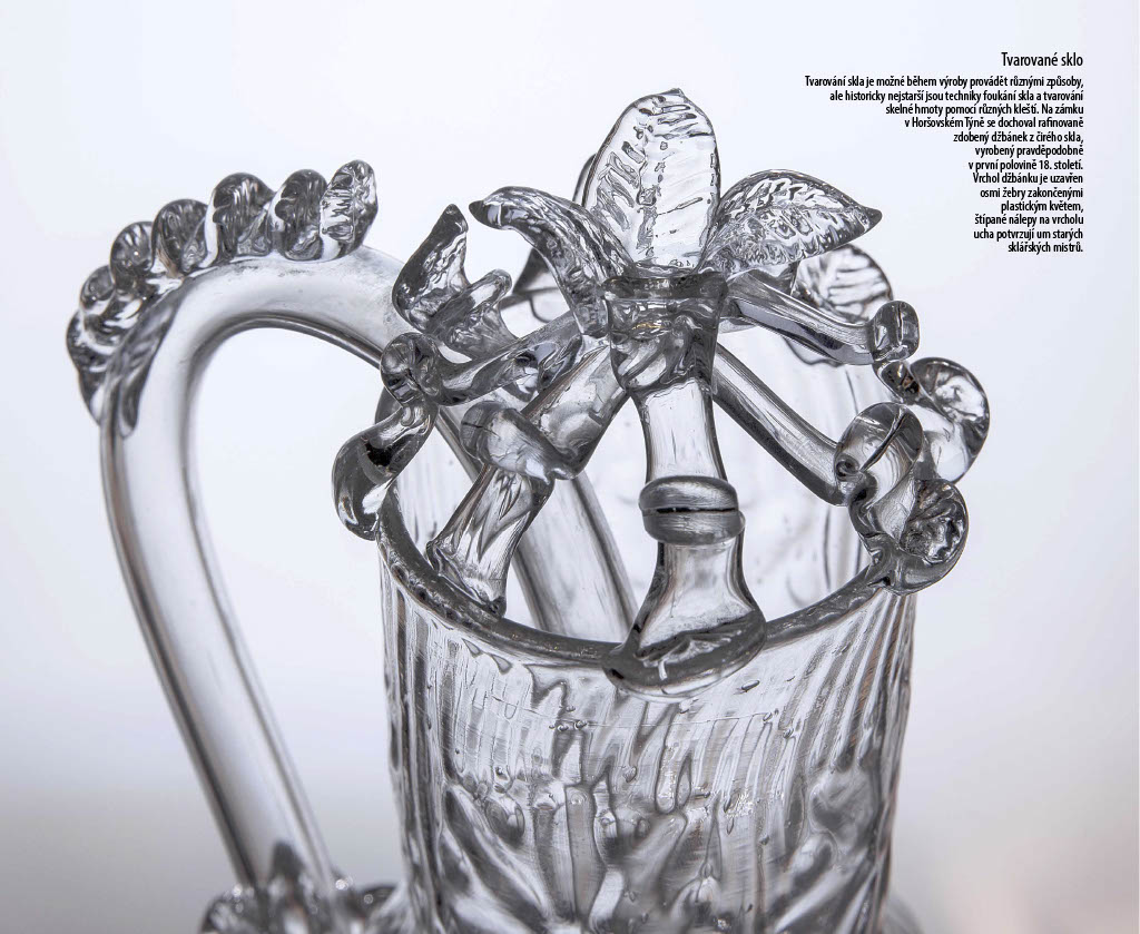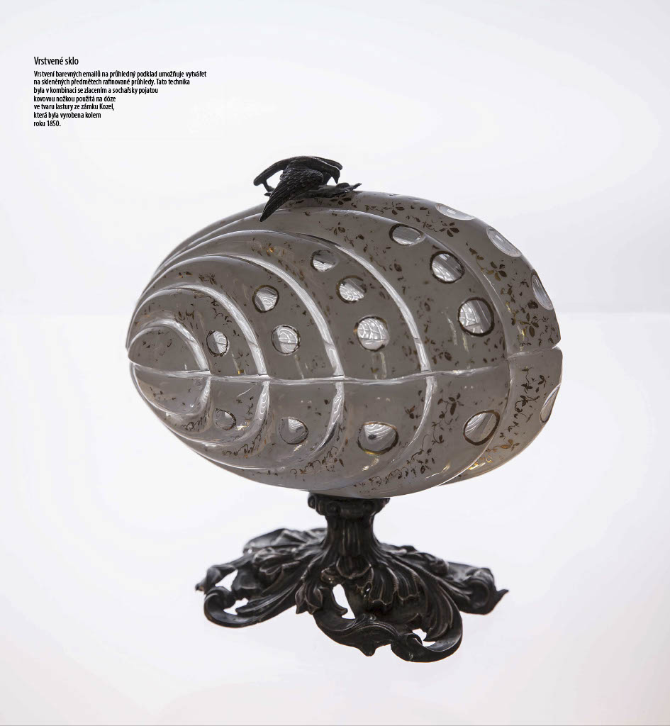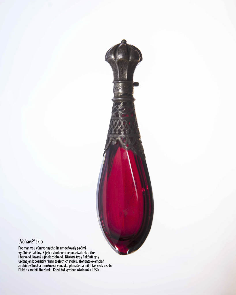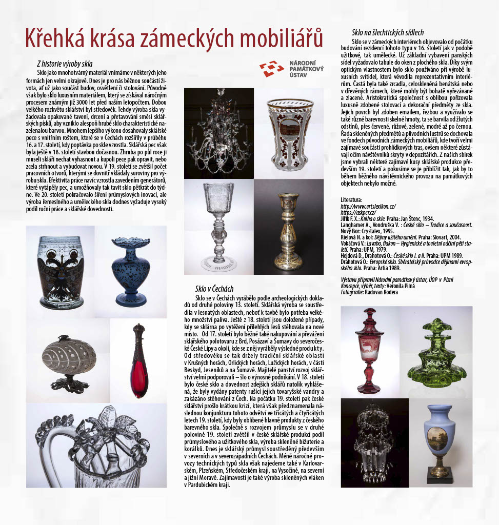 Nedílnou součástí zámeckých interiérů jsou předměty ze skla, ať už v podobě svítidel nebo dekorativních předmětů. Paleta dekorativních technik a sklářských postupů použitých na dochovaných předmětech je široká. Setkáváme se s pestrou barevností: od skla přirozeně čirého až po jasné rubínové či indigové odstíny. Nacházíme také různé varianty zdobení povrchu, ať už se jedná o broušení, rytí, malbu či zlacení. Výstava nechala diváka tuto křehkou krásu historického skla objevit a obdivovat prostřednictvím velkoformátových fotografií.