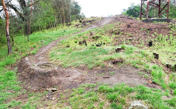 Závist-Šance: poškozená koruna valu se stopami pneumatik (2019)