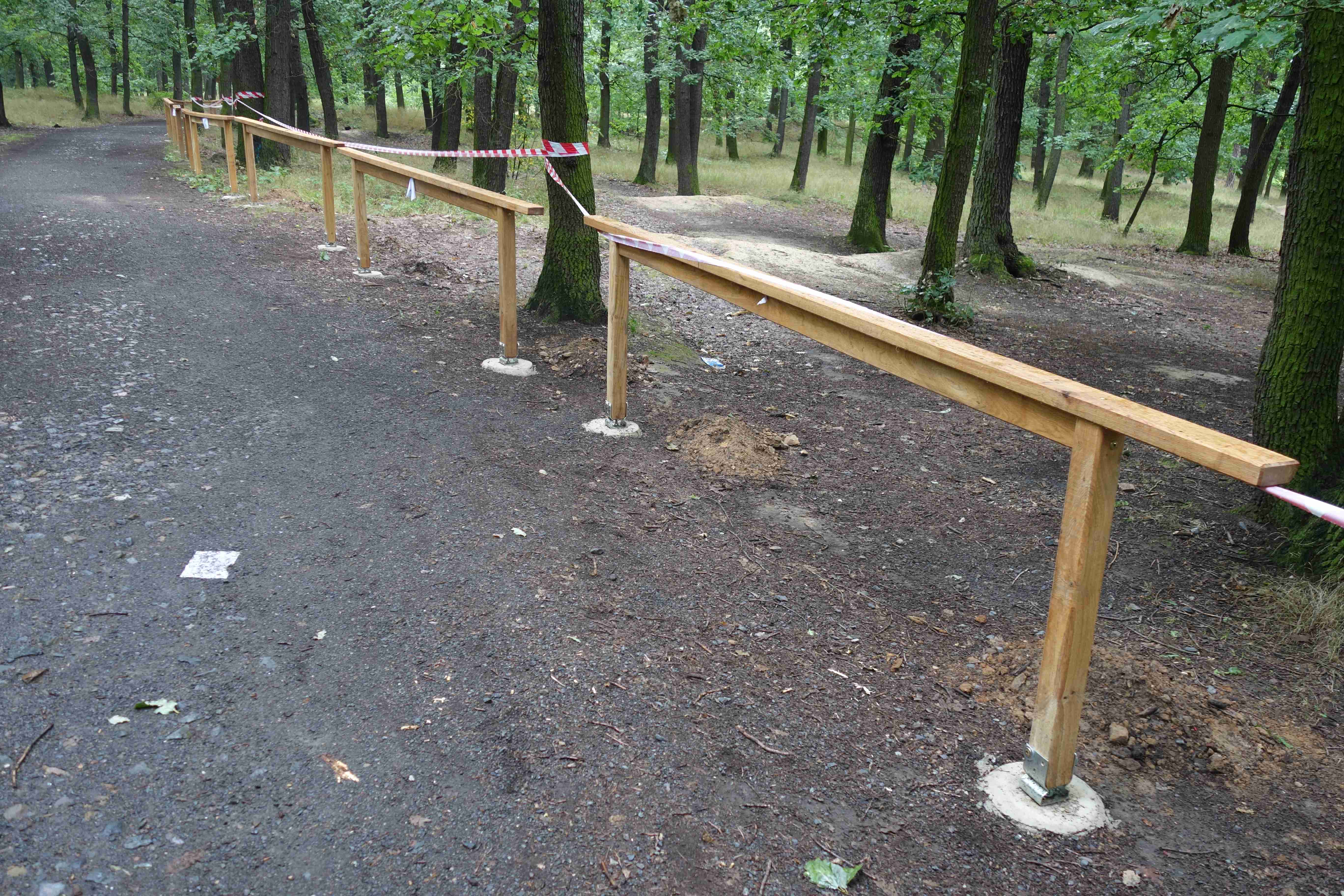 Kunratice: dřevěné zábrany podél hlavní cesty v prostoru husitského tábora (2019)