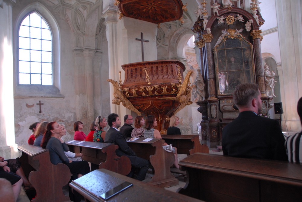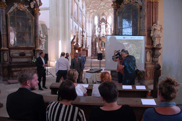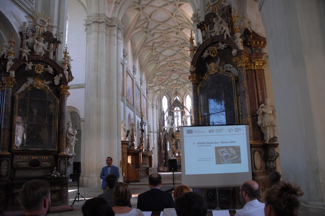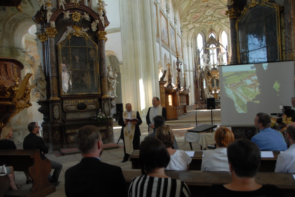 Slavnostní zahájení stavební části projektu v klášterním kostele Nanebevzetí Panny Marie.