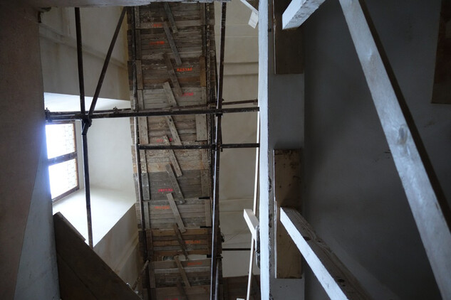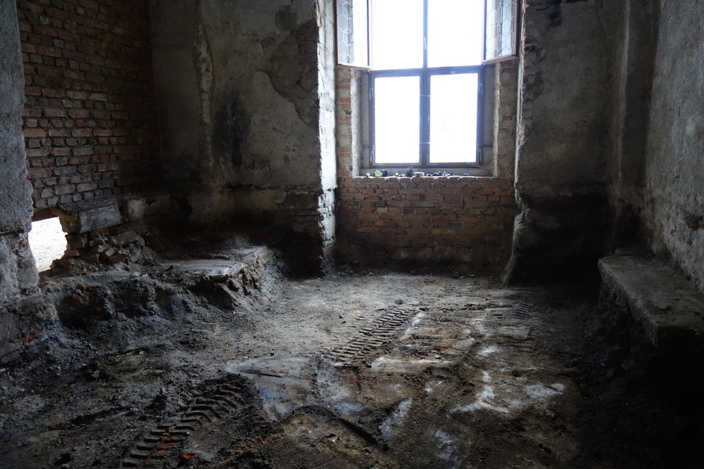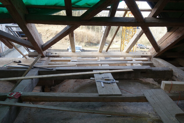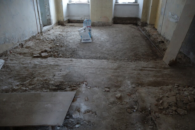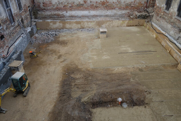Nový konvent – montáž hrubé podlahy v zimním refektáři. Úprava finálního nátěru v průjezdu na rajský dvůr nového konventu. Osazení oken do bývalé klášterní kuchyně.