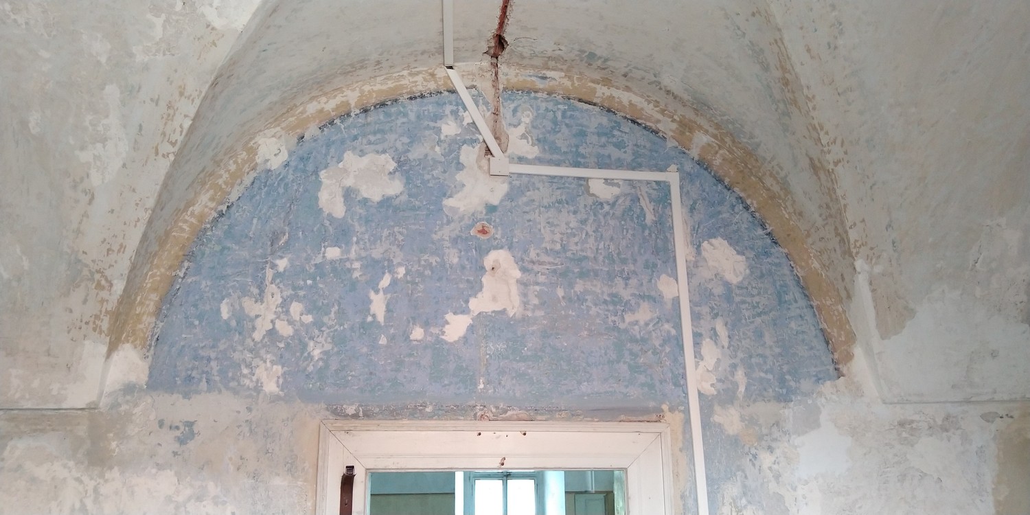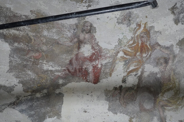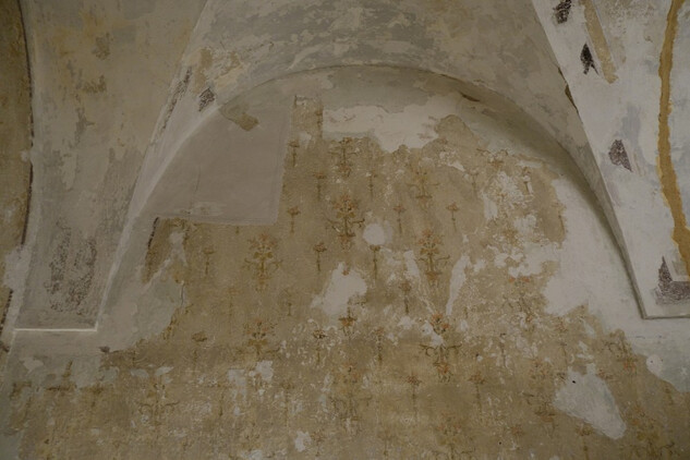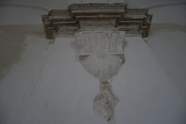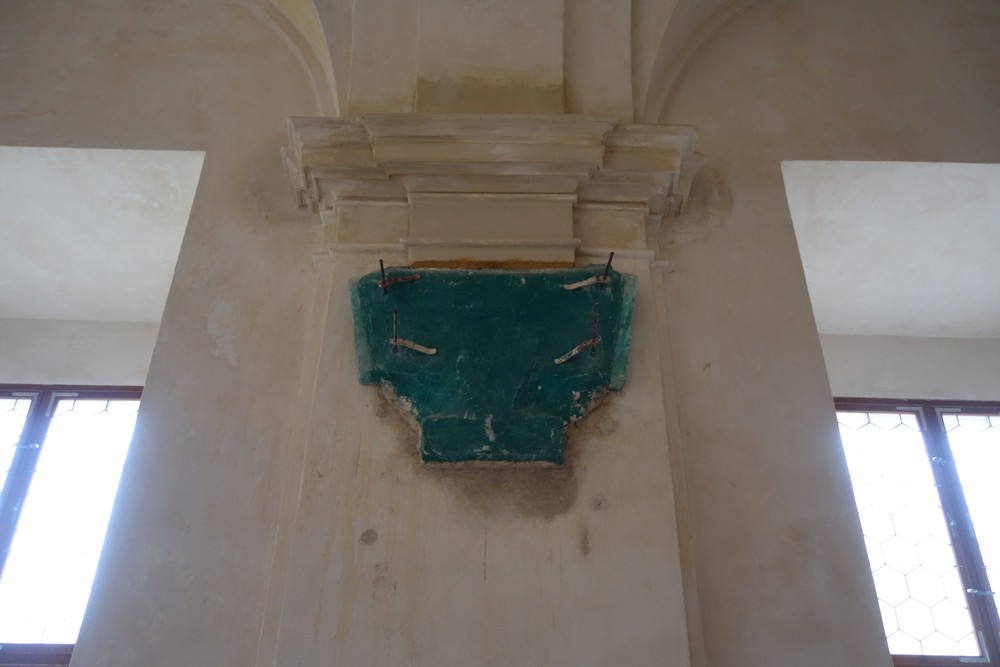 Zkouška realizace kreseb na kletovou omítku v místnosti noviciátu. Kresbu uhlem včetně fixace provedl ilustrátor Pavel Trnka.
