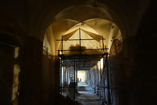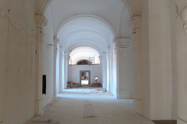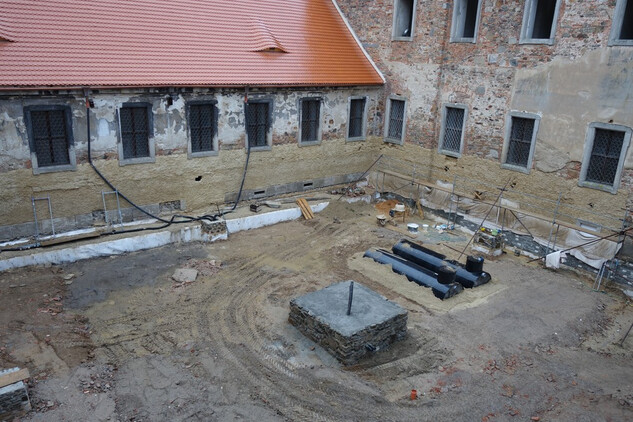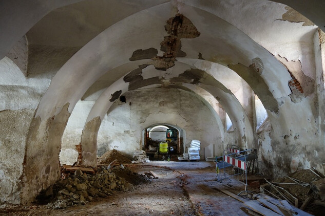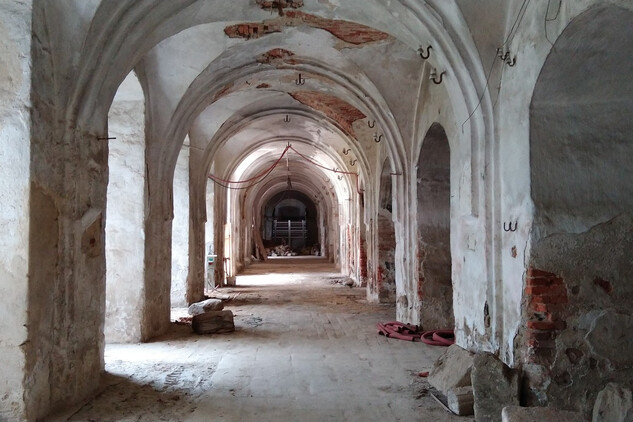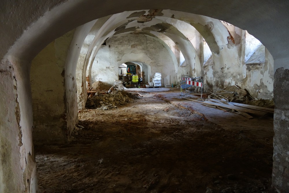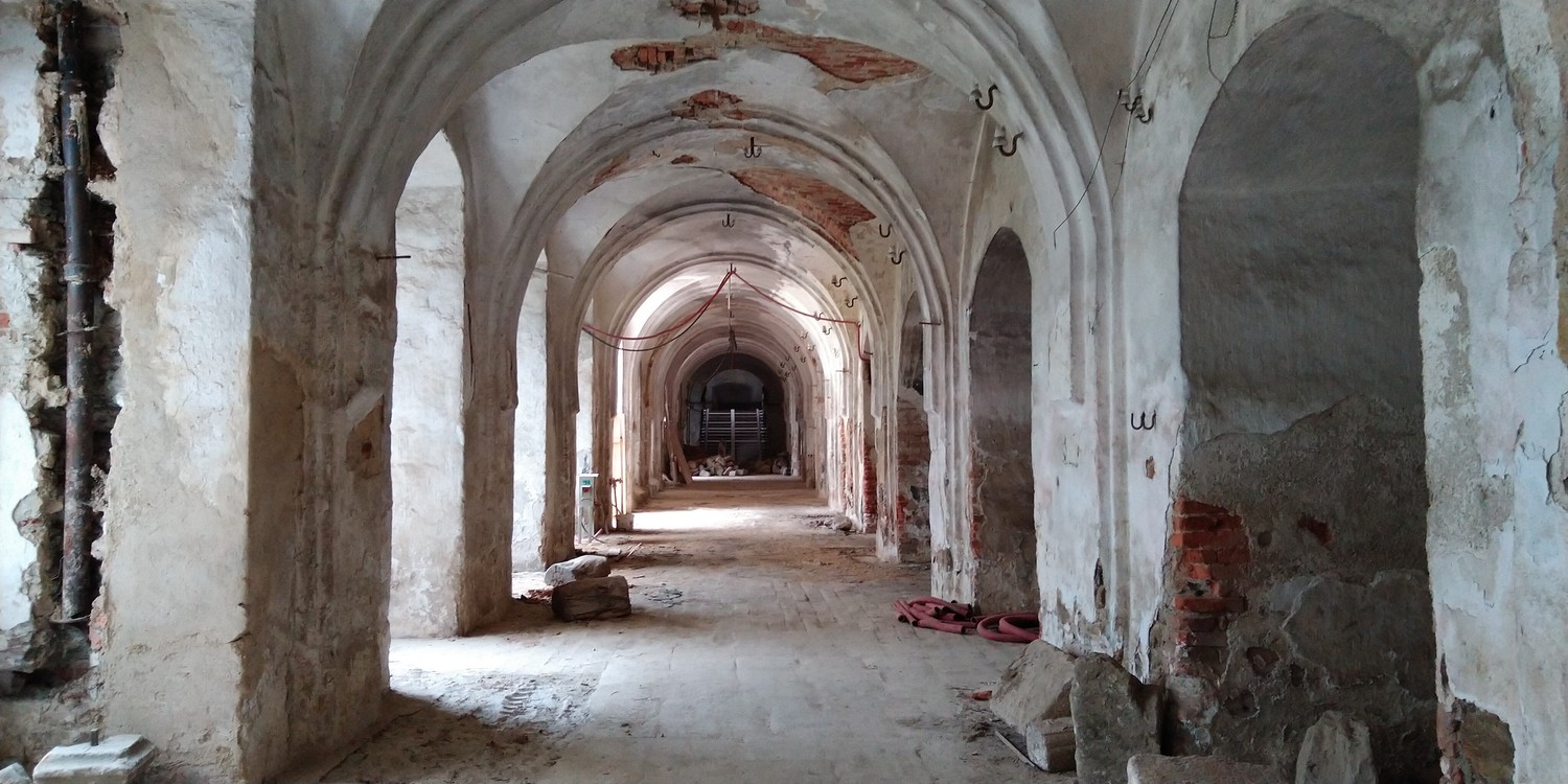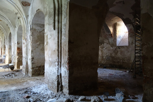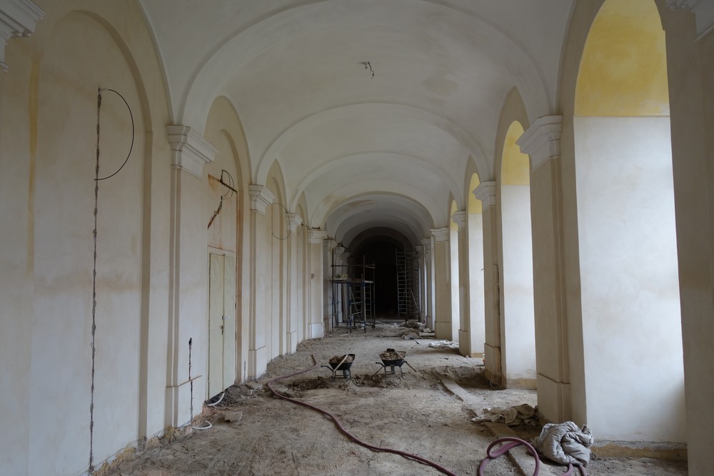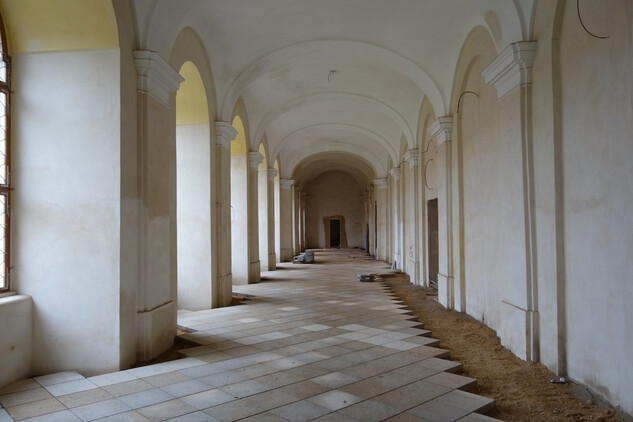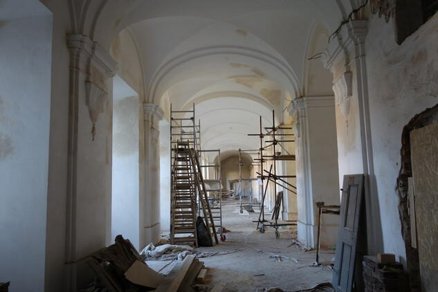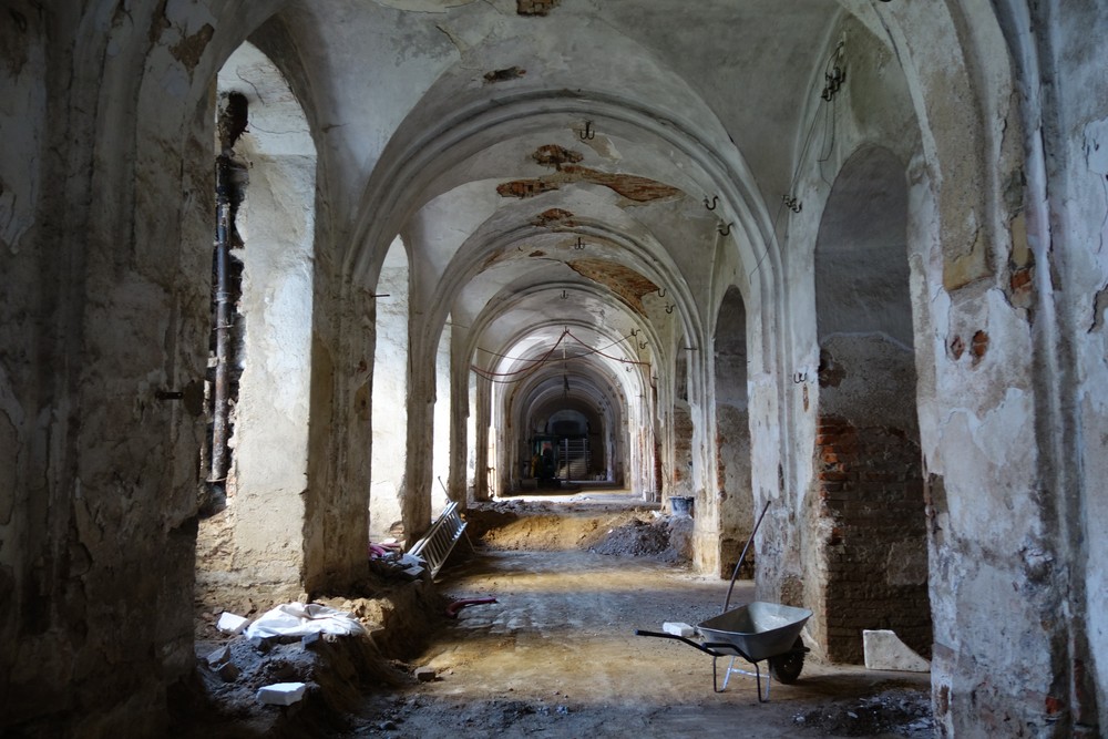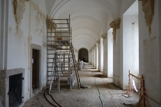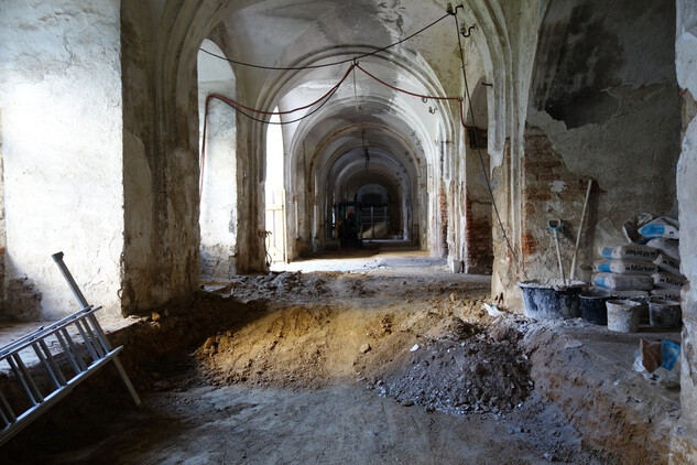 Nový konvent – oprava omítek v průjezdu ze vstupního nádvoří na dvůr Nového konventu ve východním křídle. Provedena pokládka čistých prkenných podlah v expozičních místnostech v patře východního křídla. Dokončení modelace říms v přízemí severní části východního křídla, pokračování v modelaci říms v jižní části přízemí. Příprava na osazení prosklených stěn v přízemí a patře západní části ambitové chodby severního křídla. Oprava položené dlažby ve výstavním sále v přízemí severního křídla. Dokončení zásypu kleneb v zimním refektáři.