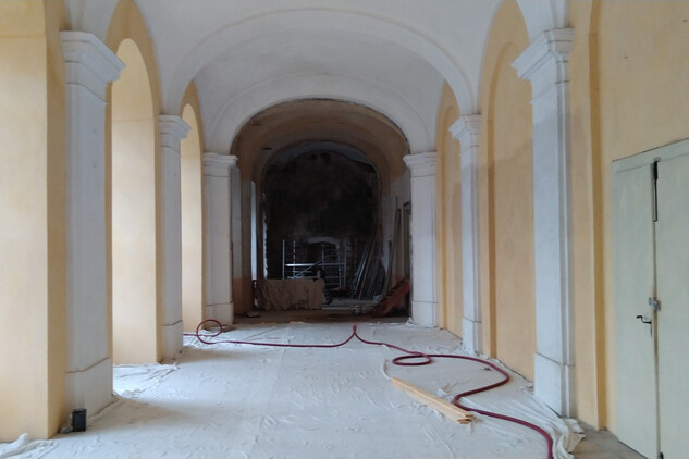 Nový konvent – dokončení modelace říms v jižní části přízemí východního křídla. Finální výmalba ambitových chodeb v obou patrech vč. soklu. Vzorkování a výmalba dýmníku v bývalé klášterní kuchyni. Restaurátorská úprava analytických oken (výmalba z 19. století) v expozici mnišských cel. Hoblování a nátěry podlah v expozičních místnostech. Dokončení montáže schodišťových stupňů a osazení zábradlí na propojovací schodiště z kuchyně do refektáře. Oprava a nátěr hlavního barokního schodiště v SZ části konventu. Montáž koncových prvků EPS a EZS, montáž vypínačů a světel v ambitových chodbách. Osazení skrytých dveří v přízemí severního křídla.