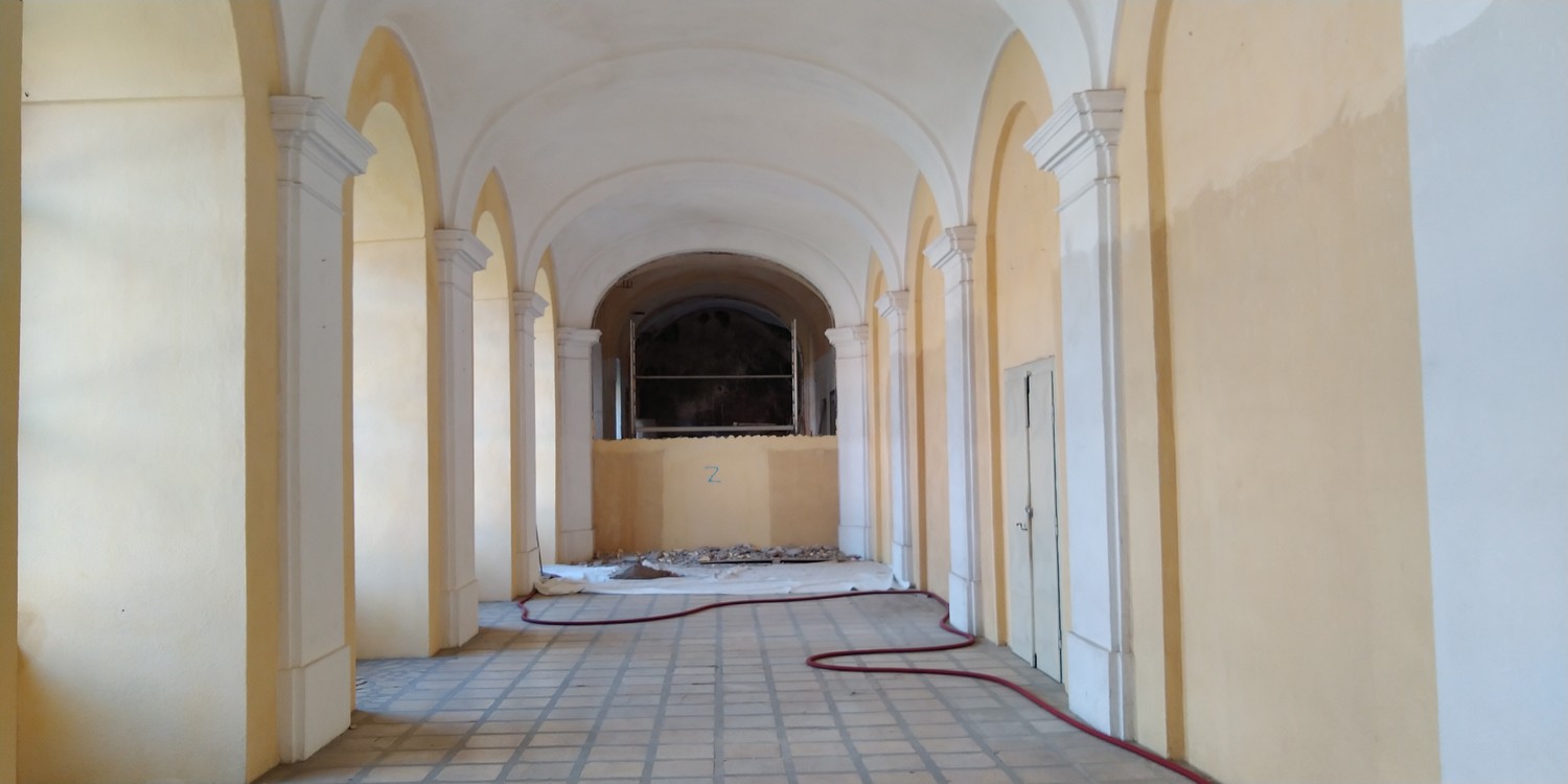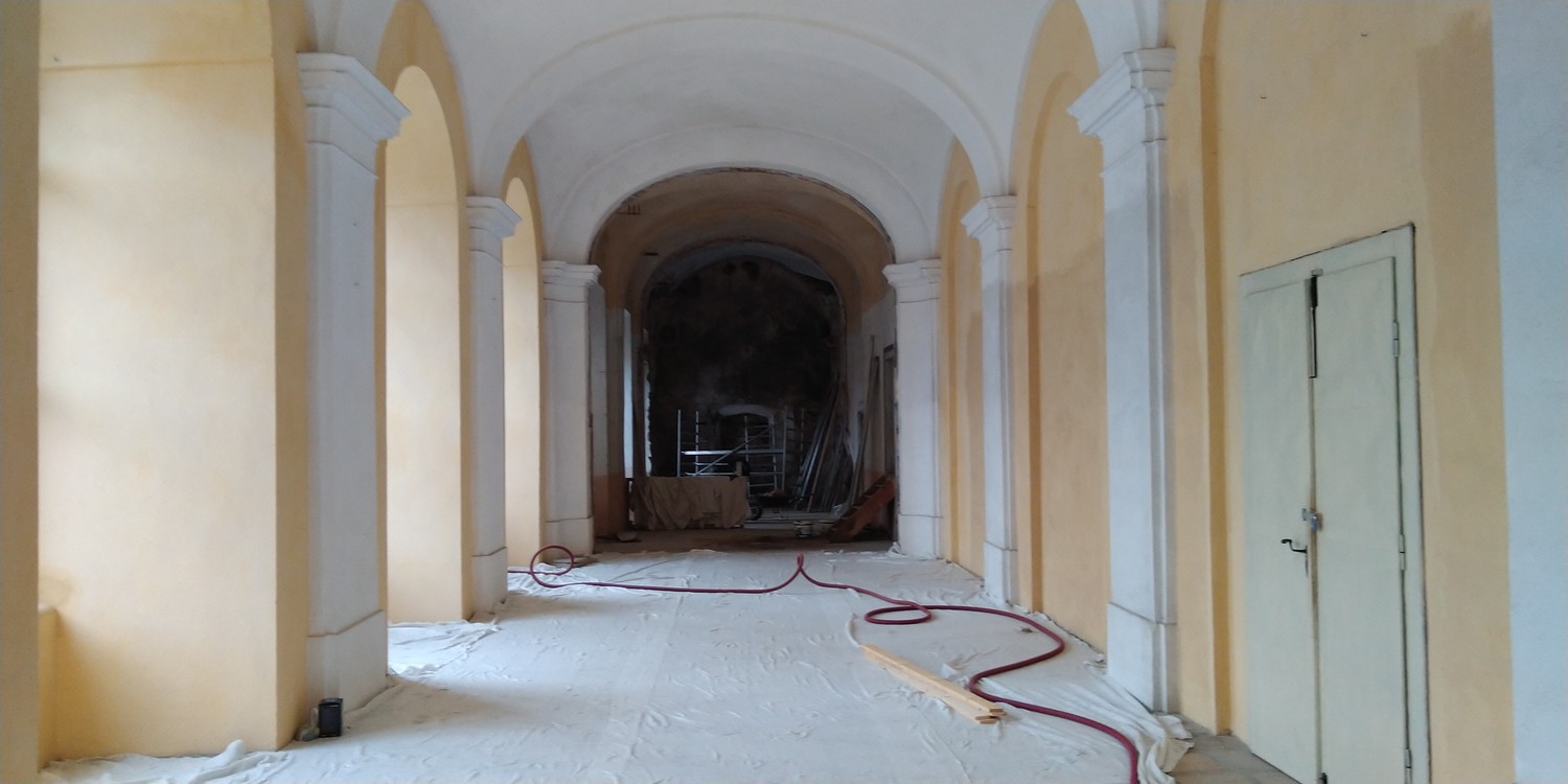 Nový konvent – úklidové práce na chodbách a interiérech obou podlaží. Finální nátěry dřevěných podlah v expozičních místnostech. Výmalba zimního refektáře. Odstraňování vad a nedodělků.