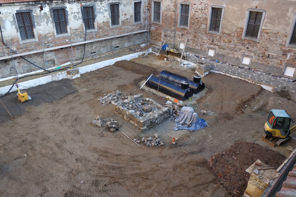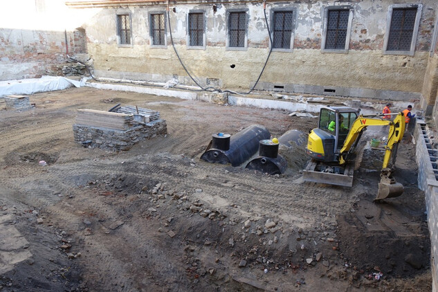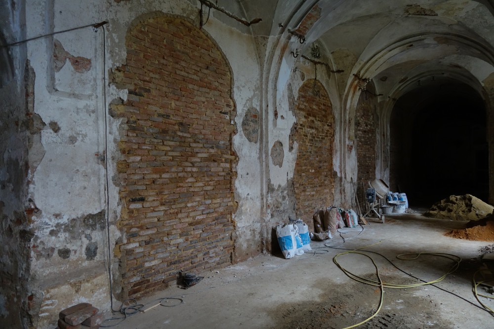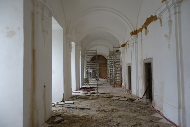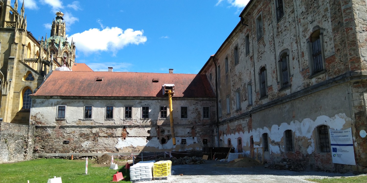 Dokončování bouracích prací nevhodně vestavěných konstrukcí - snižování podlah na původní úroveň v přízemí severního křídla Nového konventu. Ambitová chodba v prvním patře - lokální úprava štukových omítek stěn a kleneb, oprava případně doplnění chybějících částí říms a zdobných prvků pilířů, odbourání betonové dlažby v severní části a kamenné dlažby ve východní části chodby. Realizace zazdívek v přízemí Nového konventu mezi ambitovou chodbou a bývalou klášterní kuchyní z druhotně použitého materiálu (cihly z bouraných konstrukcí). Instalace elektrorozvodu v místnostech budoucích expozic ve Starém i Novém konventu. Oprava omítek schodišťové věže, oprava (dozdění a omítnutí) dvou komínů na střeše Starého konventu. Rajský dvůr – postupné zvyšování úrovně rajského dvora, pokládka bentonitové rohože, umístění dvou retenčních nádrží na dešťovou vodu a vyzdění základu pro kašnu. Provedení první vrstvy odsolovací omítky na fasádě Staré prelatury a Nového konventu v prostoru rajského dvora. Umístění nové trafostanice v prostoru bývalých pivovarských sklepů za jižním křídlem Nového konventu, výkop a pokládka kabelu VN od trafostanice po sloup ČEZ.