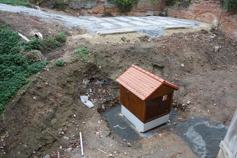 Rajský dvůr – přerušení prací z důvodu nevhodných klimatických podmínek. U subdodavatele zahájena repase dobové kašny určené na rajský dvůr.