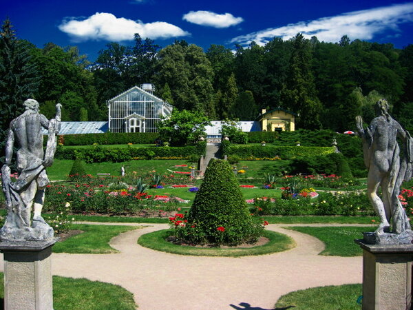 Růžovou zahradu založil arcivévoda František Ferdinand d´Este v období kolem roku 1900. Skleníky s teplomilnými a subtropickými rostlinami, korkový pavilon a sochařská výzdoba tvoří nedílnou součást tohoto oblíbeného místa.