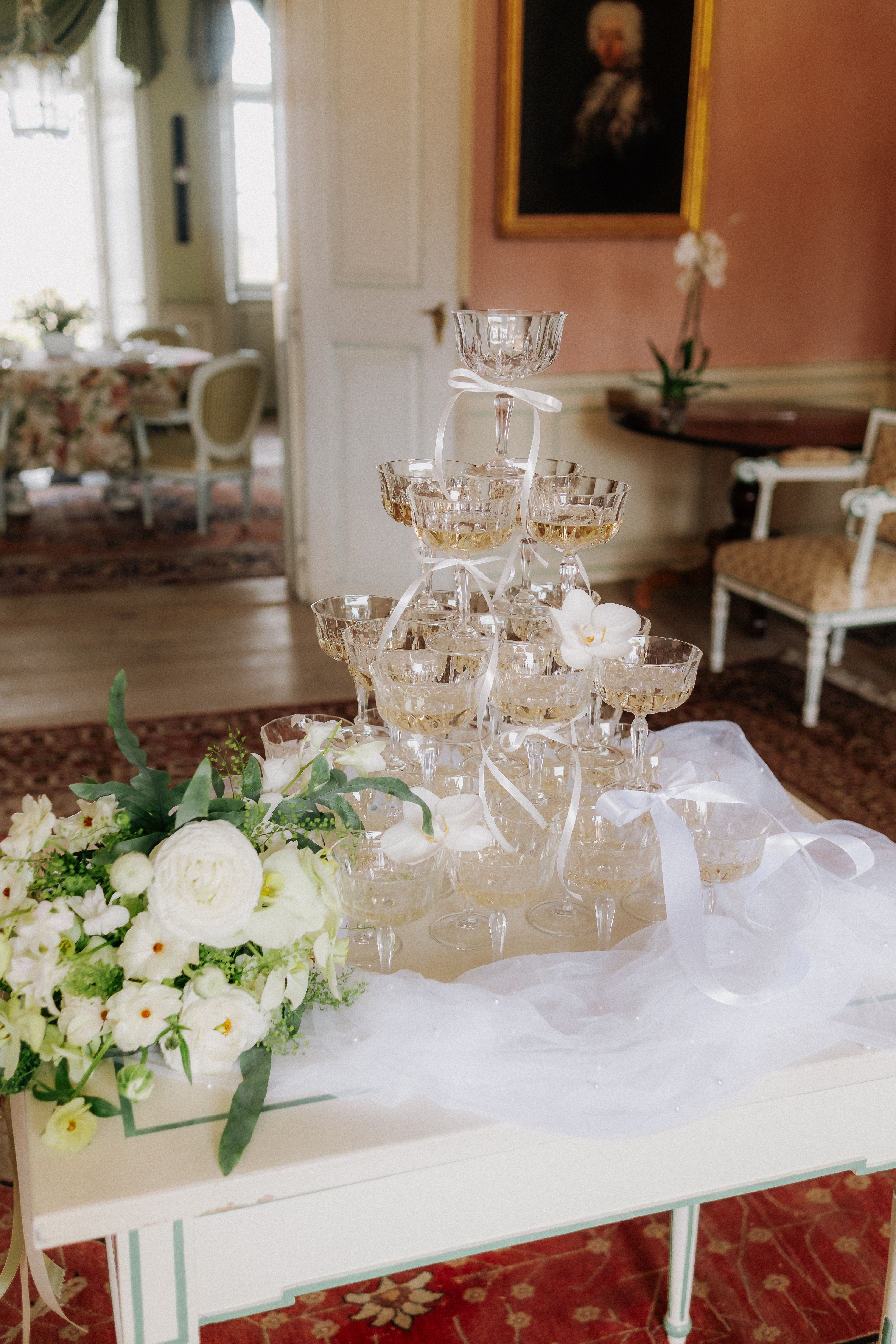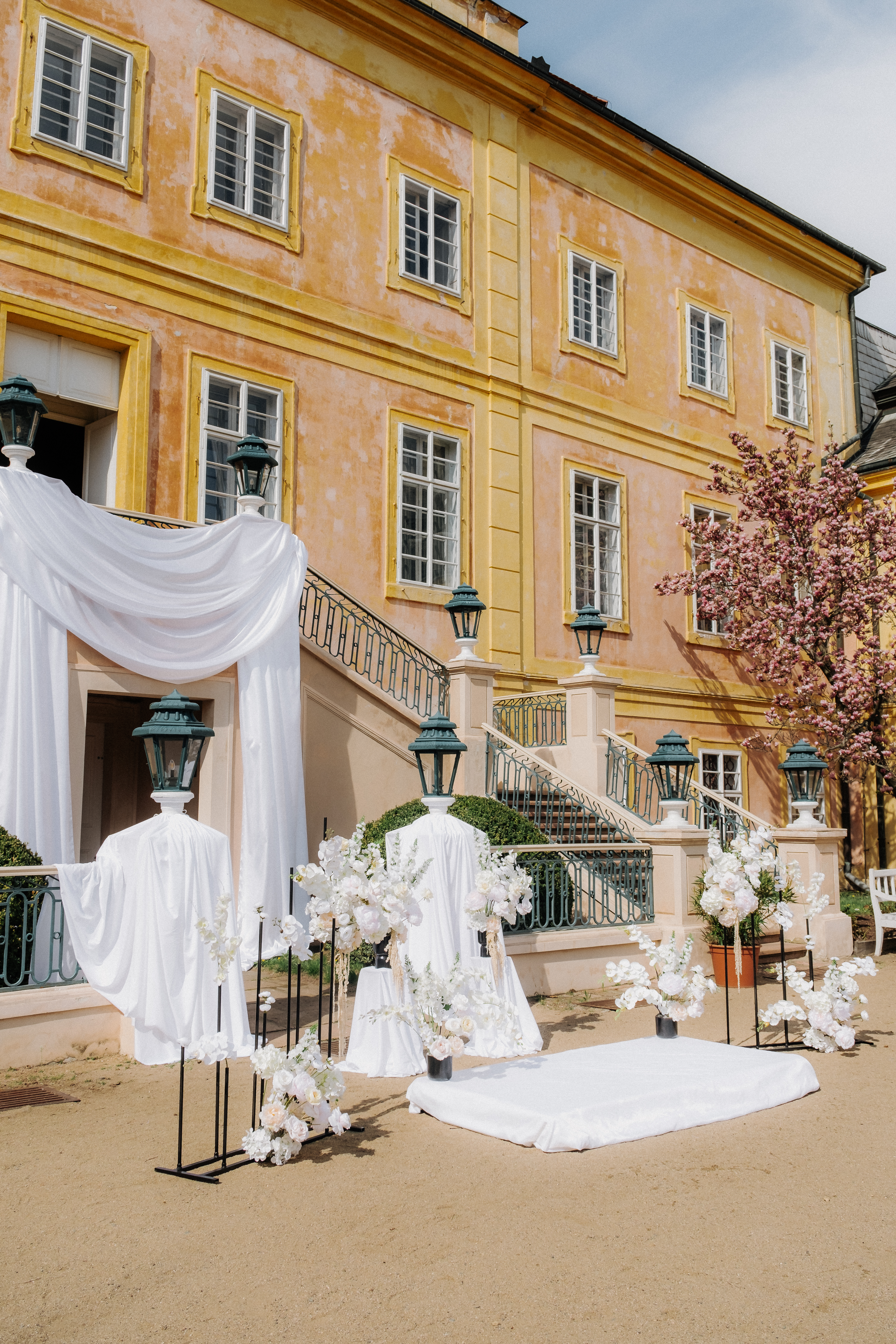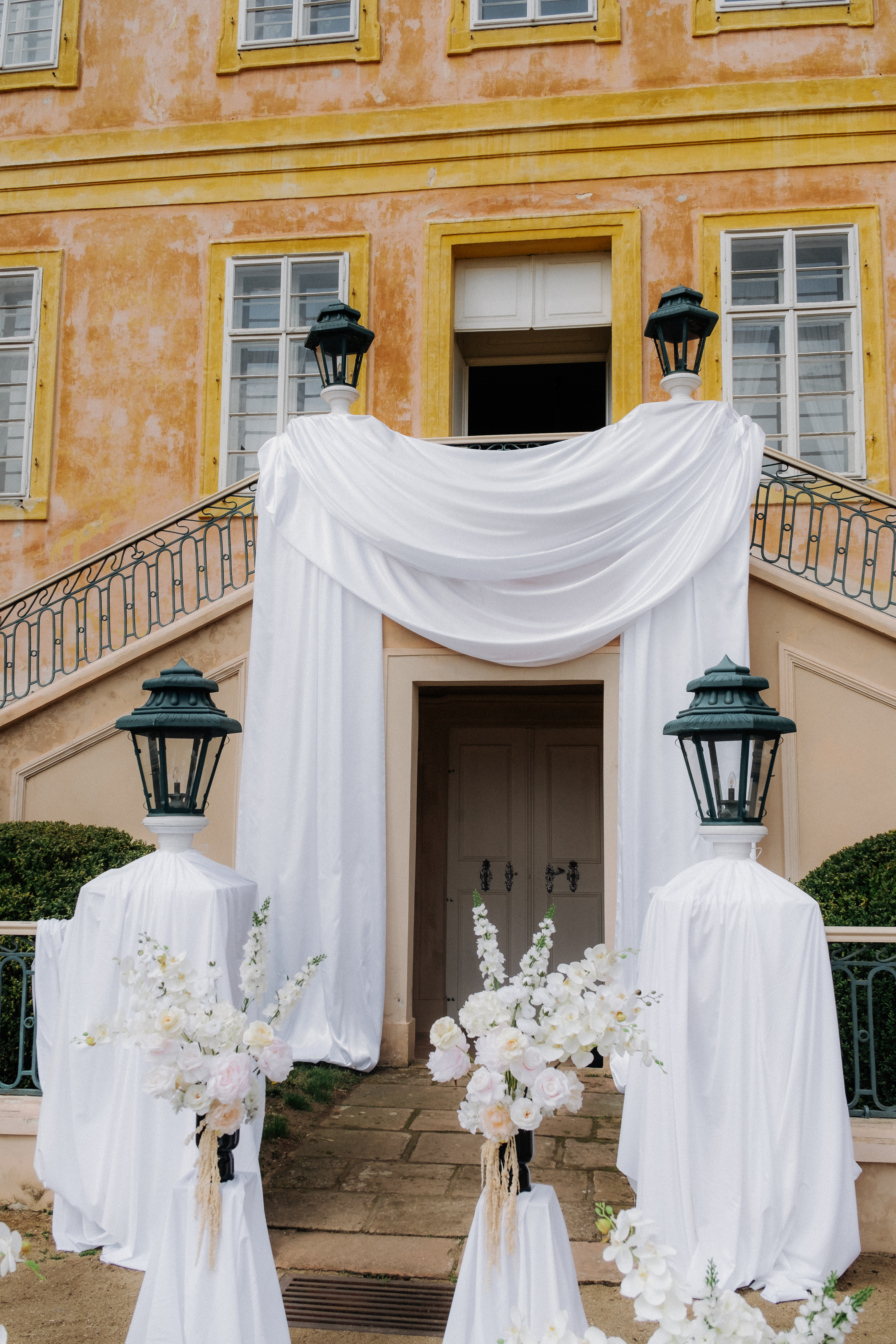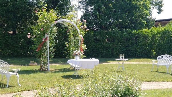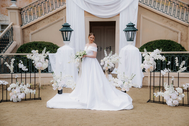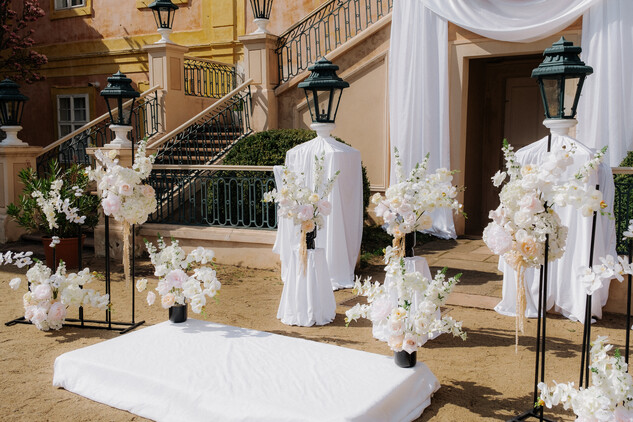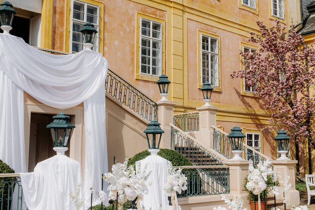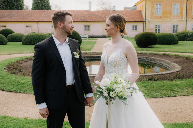 Pokud dáváte přednost spojení s přírodou, zvolte si pro Váš svatební obřad naši malebnou francouzskou zahradu. S jejími geometricky upravenými buxusy, rozkvetlými květinovými záhony a klidným vodním prvkem poskytuje ideální místo pro venkovní ceremonii. Zažijte svůj velký den pod modrým nebem, obklopeni květinami a zelení, kde každý pohled odhaluje další úchvatný výhled, a vytvořte si vzpomínky, které zůstanou navždy.