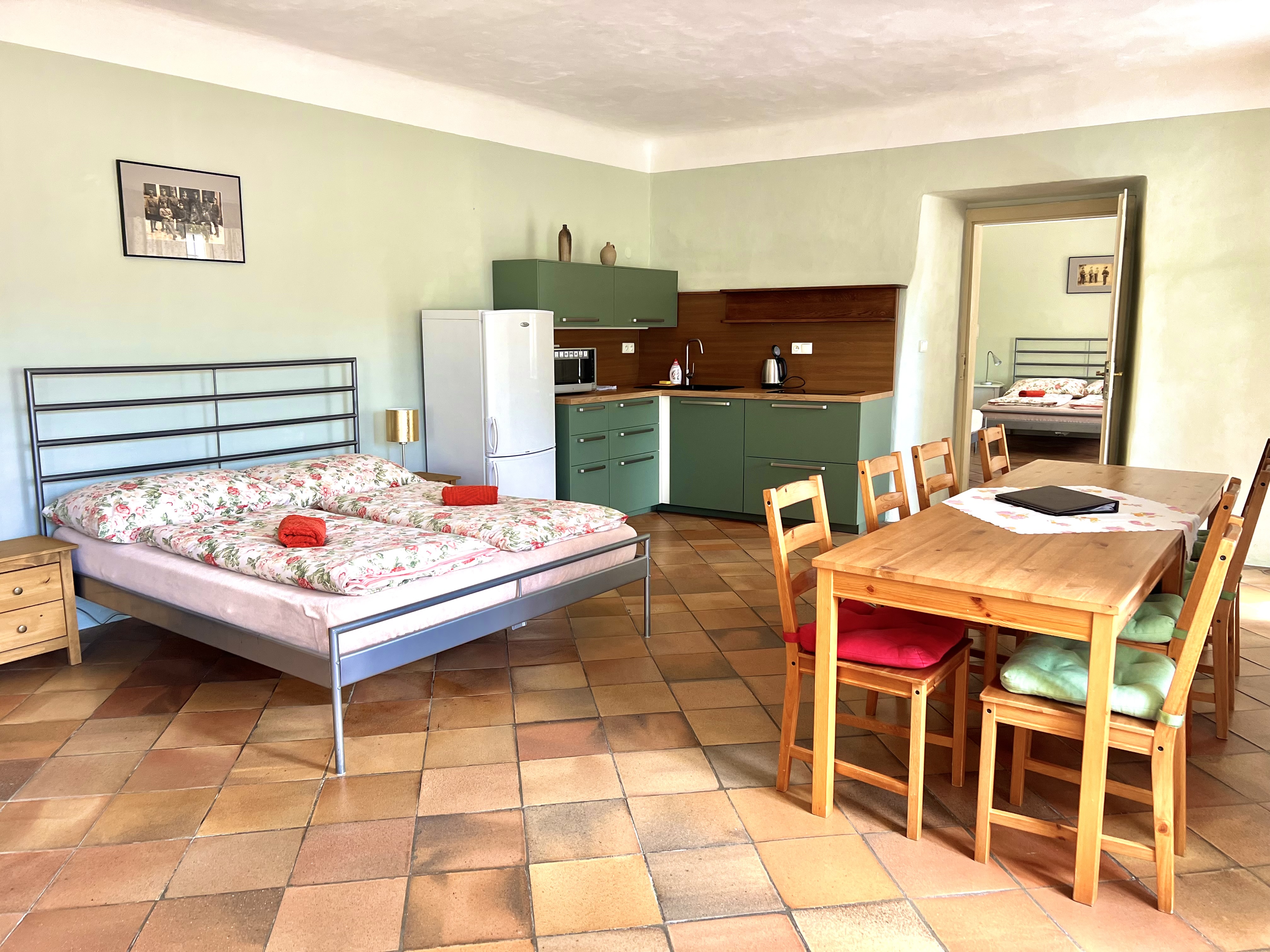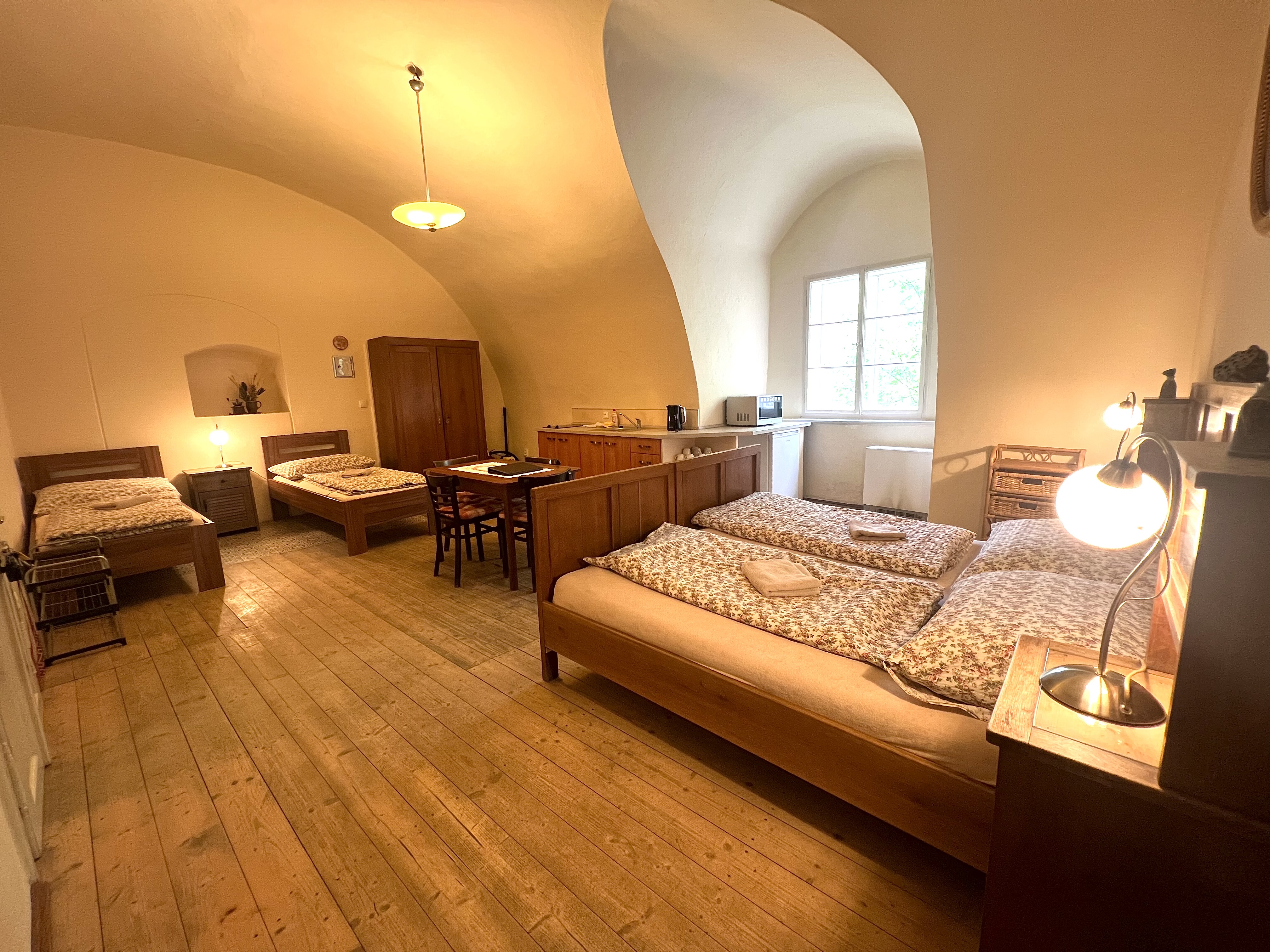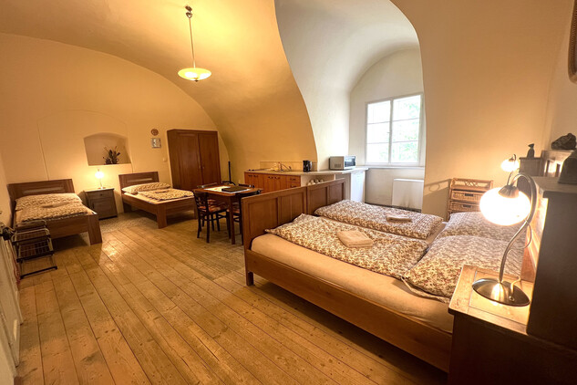 - Kapacita ubytování je 7 osob. Pokoj obsazujeme v počtu osob 3 a více.