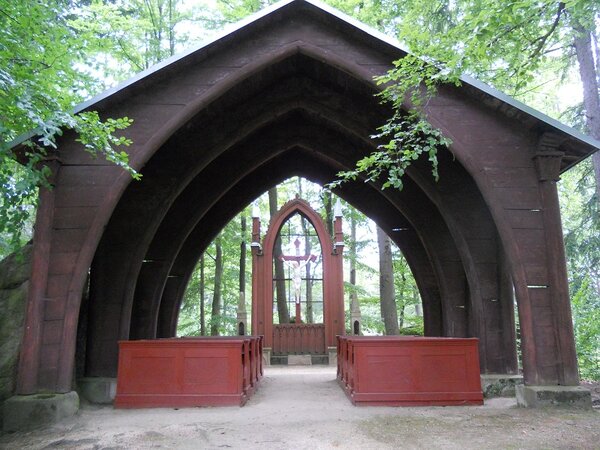 Unikátní dřevěná pseudogotická kaple svatého Kříže z roku 1835 je jedním z romantických klenotů rozlehlého anglického parku zámku Kynžvart. Obřad v této otevřené kapli mezi prosvítajícími paprsky slunce ve vás zanechá celoživotní vzpomínku.