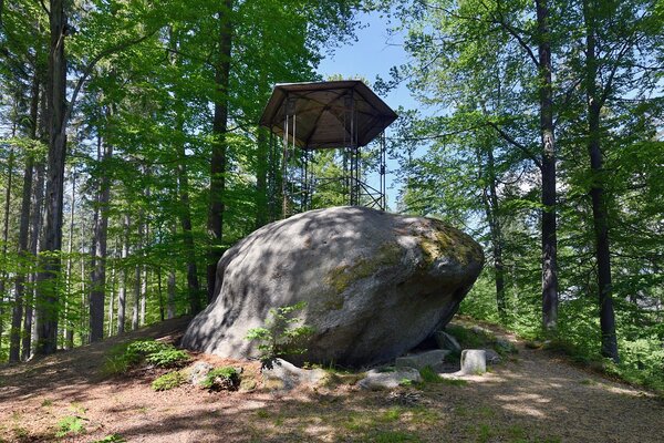 Na mohutném kamenném balvanu byl v roce 1833 postaven šestiboký železný chrámek, podle tehdy oblíbeného typu čínských pavilónků. Obnoven byl v roce 1993. U paty balvanu nalezneme kamenné odpočívadlo. Z altánku byl původně výhled na Kynžvart.