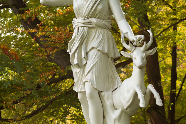 Some marble sculptures (e. g. "Cupid and Psyche") originated in Antonio Canova's workshop in Rome, reliefs were made by Bertel Thorwaldsen, while some other sculptures and busts were created by Christian Rauch, Pietro Fontana, Pompeo Marchese, Giuseppe Pisani and Pietro Tenerani. In total, this unique set consists of 36 marble Classical sculptures.
