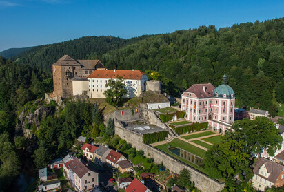 The town of Valeč has a castle with an important sculpture collection in the garden, and many historical building treasures in the town. The castle is still under reconstruction, but is also open whole year.