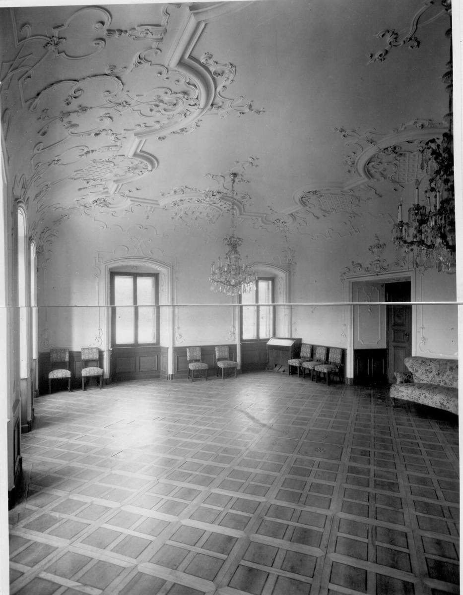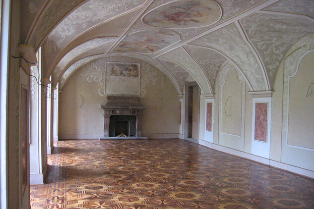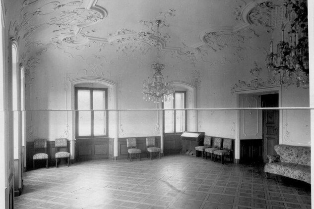 The main room with costly stucco and ceiling paintings survived the fire with minor damage. After the completion of the renovation the original furniture that has been preserved, mostly furniture and paintings, will be returned to the castle.